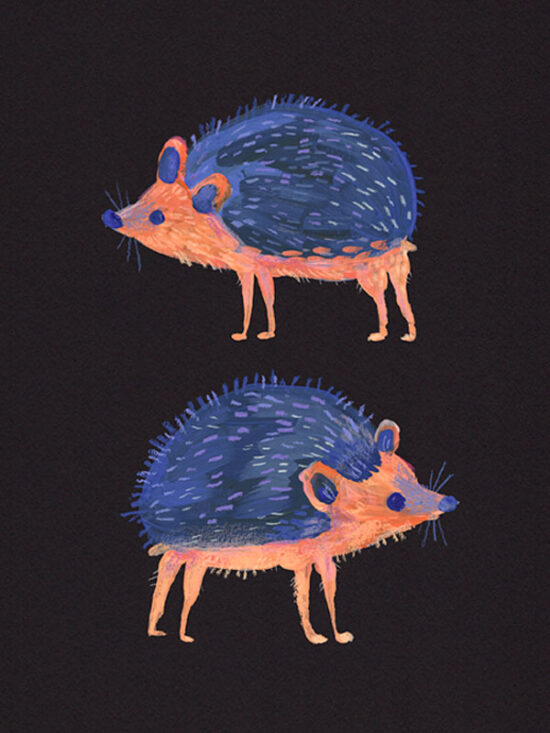 • Vibrant art print. Illustration of vibrant green dogs on a bright orange background.